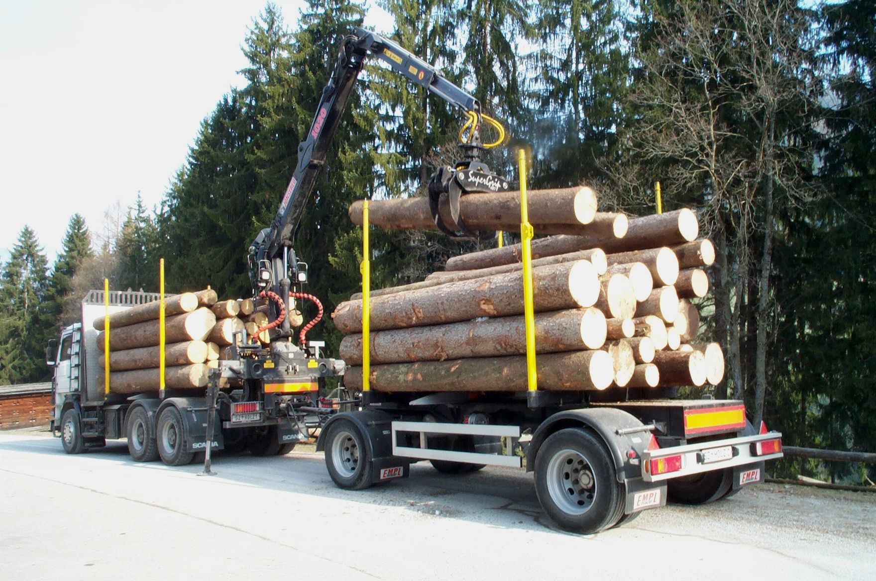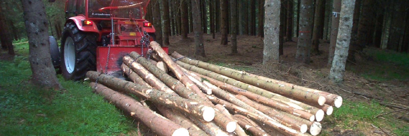 Die Bestände über dem Holzhof sind mit Traktor befahrbaren Forstwegen erschlossen, von denen aus die Bringung mit der Traktoranbauseilwinde erfolgt, in einzelnen Fällen mit dem Kurzstreckenseilkran. Mit dem Rungenanhänger wird das Holz dann zur LKW-Straße vorgeliefert.